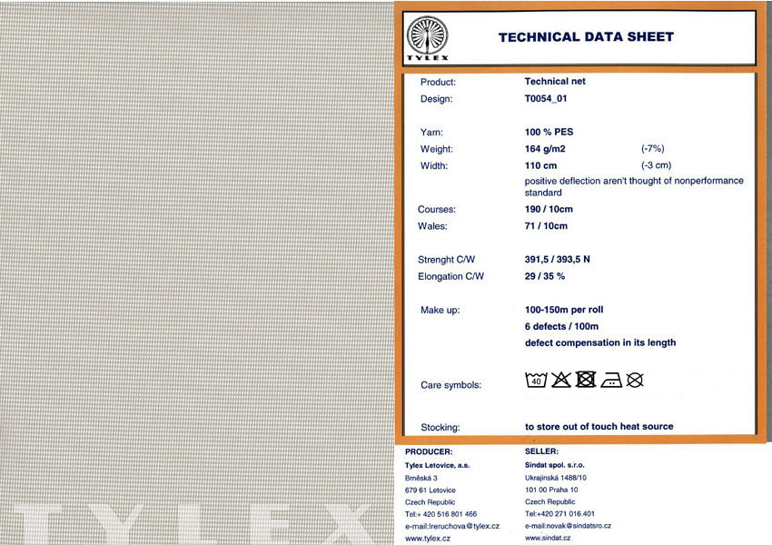 - Tests: selected samples are test for weft/warp breaking and tearing strength, fire resistance, ...