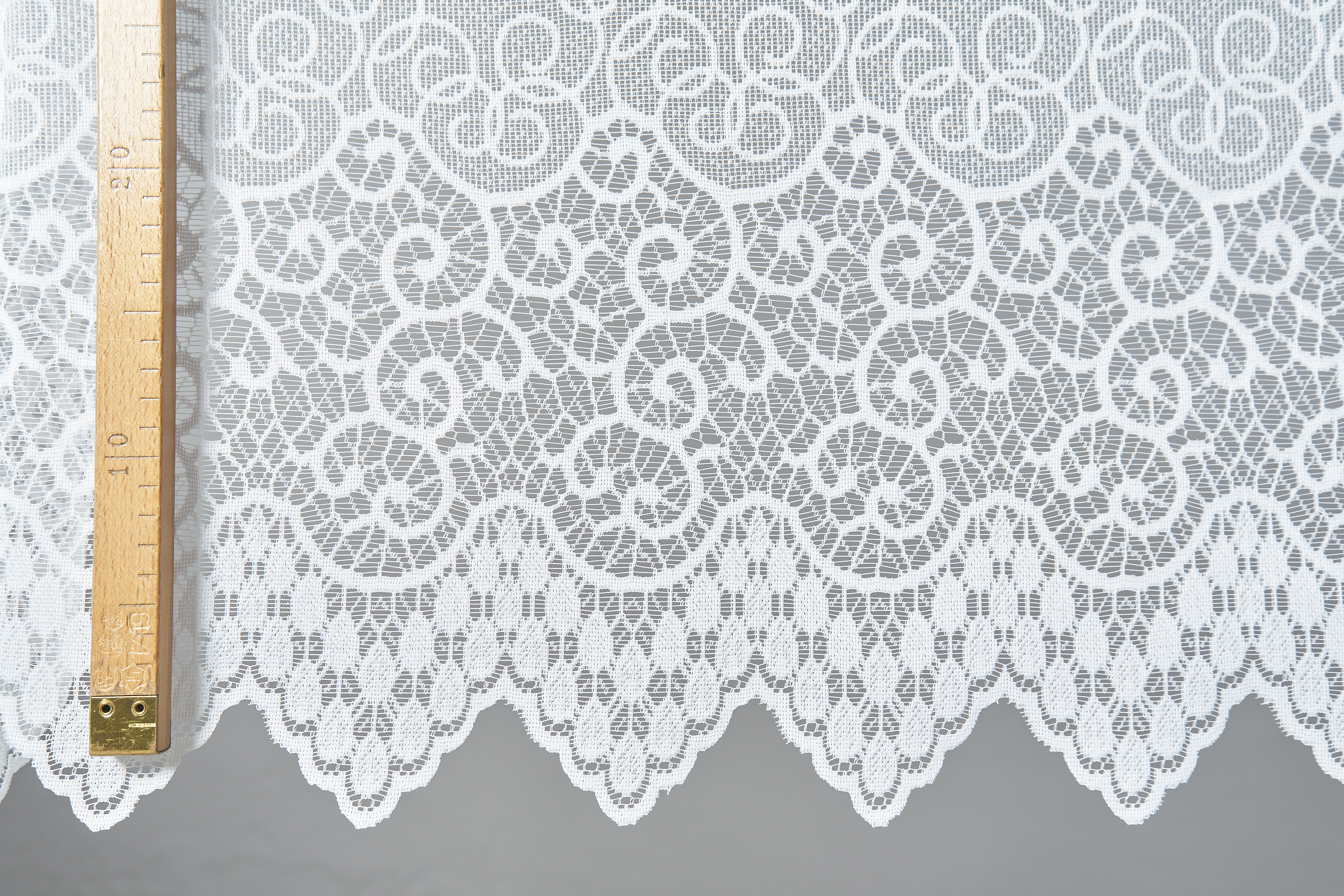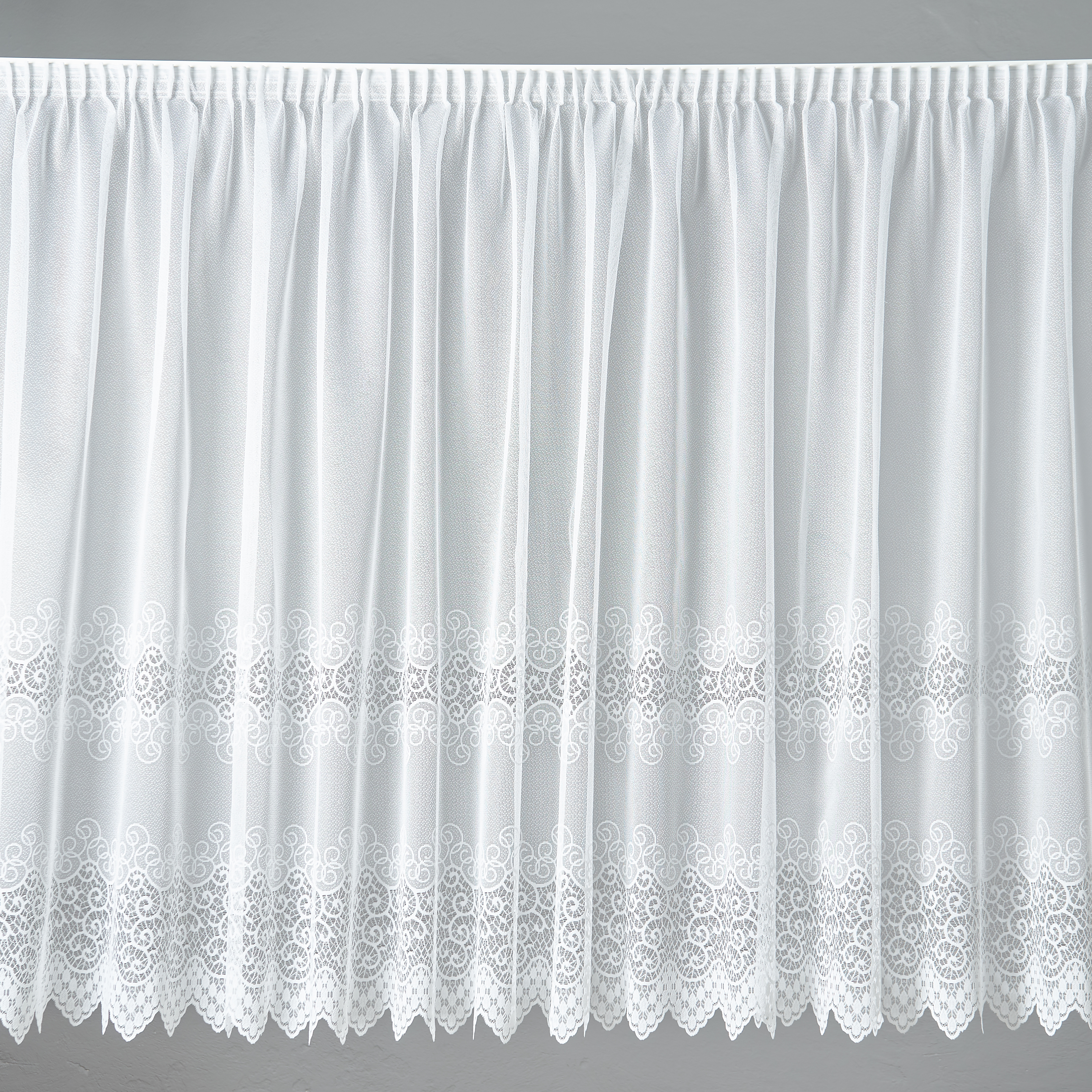 Záclona do výšky 100 cm je s průvleky na tyč do průměru 2 cm.
