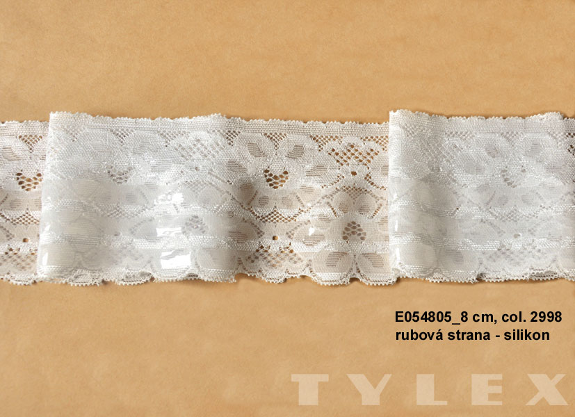 Krajka plet. el. PAD Krajka ve variantě 05 je se třemi silikonovými pruhy, určená pro samodržící punčochy. |
